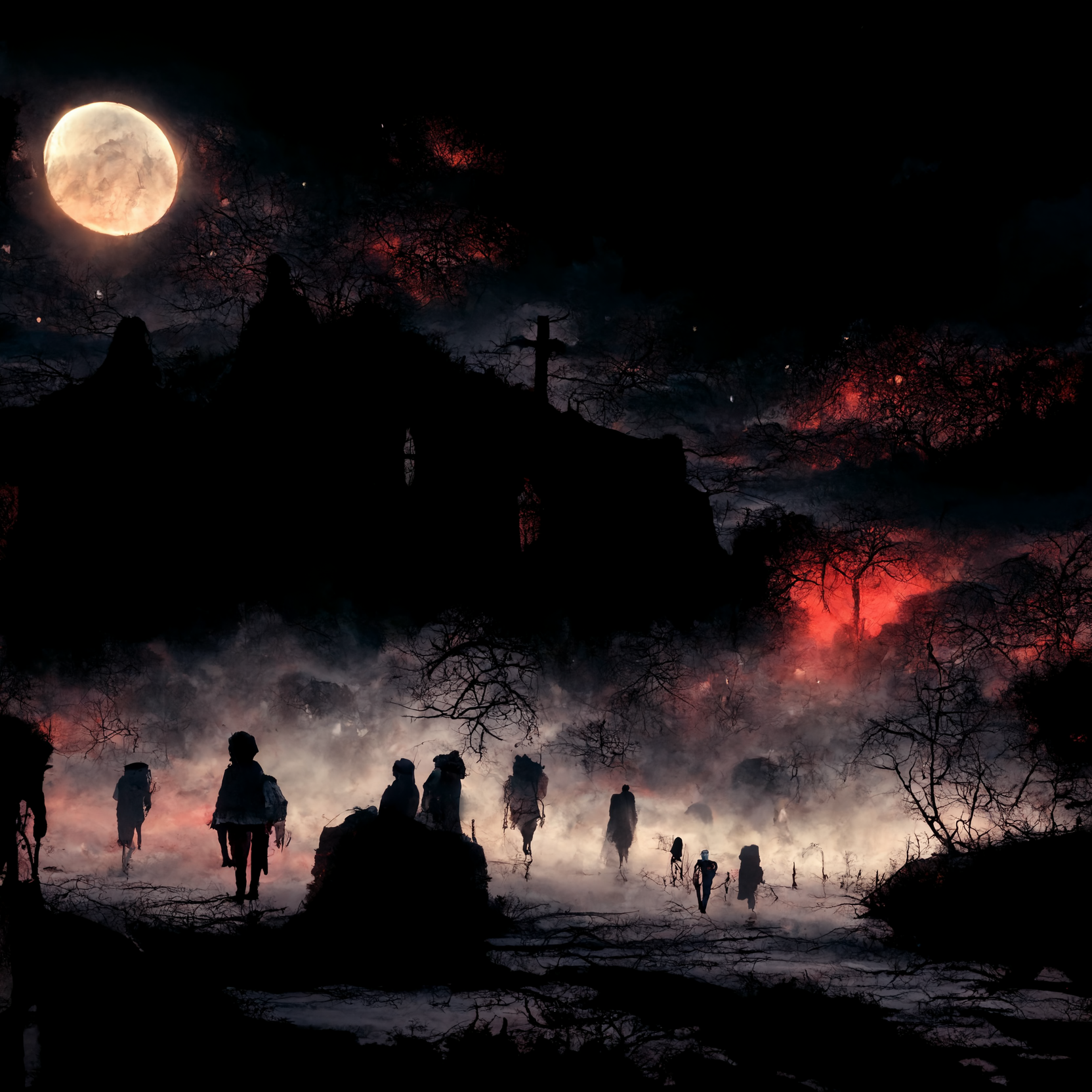 Com um novo pulso energético todos os mortos vivos que antes estavam deitados no chão, tremelicaram. Alguns se levantaram em silêncio absoluto, sorrateiros, espreitando na escuridão. Outros, grunhiram e gritaram, levantando a contragosto de seu descanso eterno por alguém, em algum lugar, trazendo as pobres criaturas de volta a vida.