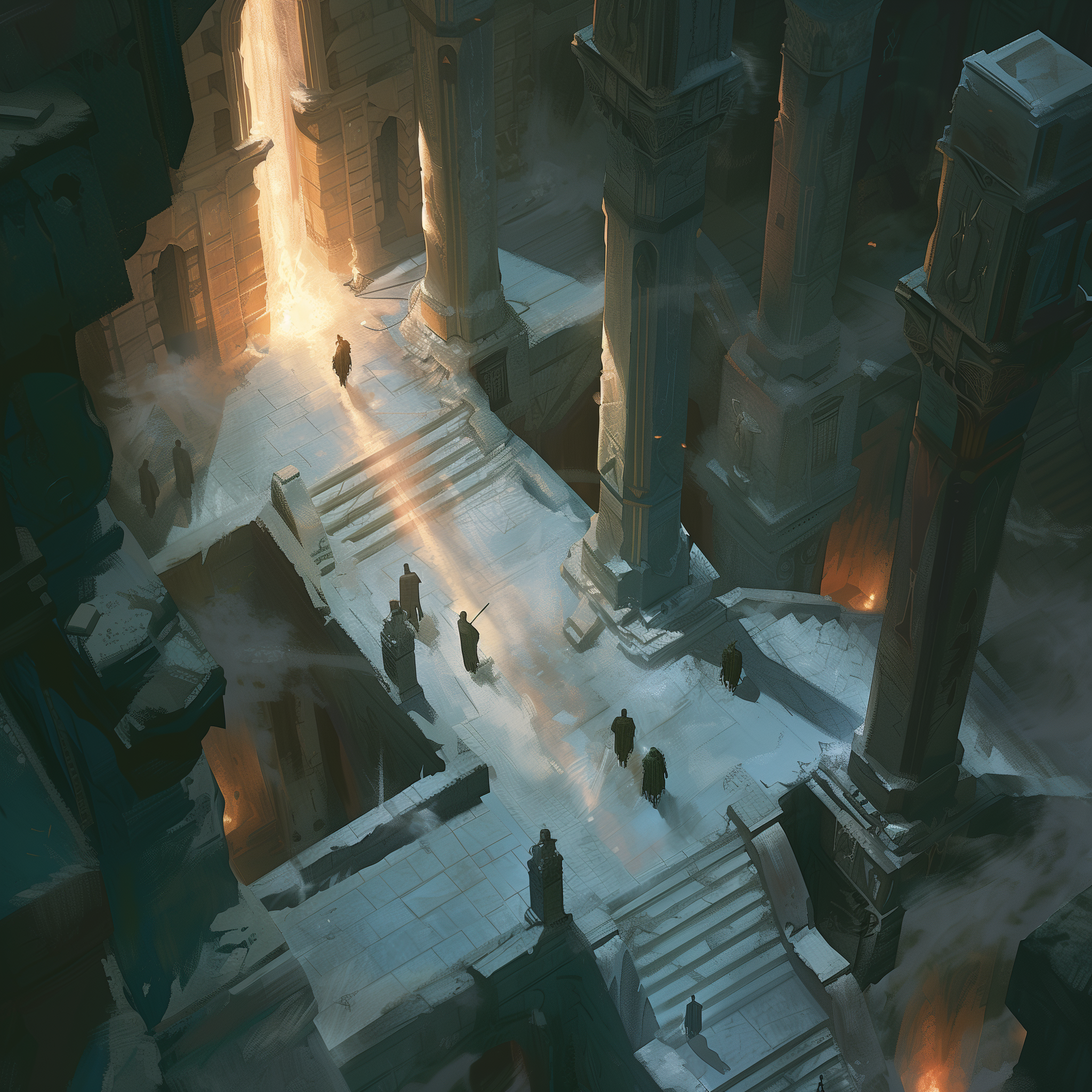 Elara encostou a mão no chão, fechou os olhos por um segundo e conseguiu visualizar toda a cena numa fração de segundo, como se o tempo tivesse parado. Ela não teria chance sozinha contra os dois. Mas igualmente nenhum deles sozinho teria chance contra elas. A maga elaborou a cena na sua cabeça e estava pronta para ação - "É isso".